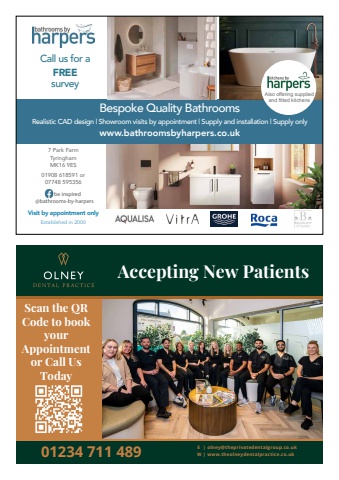 April 2025 | Phonebox Magazine 2501908 618591 or 07748 595356Established in 2000Visit by appointment only be inspired@bathrooms-by-harpers www.bathroomsbyharpers.co.ukBespoke Quality BathroomsRealistic CAD design | Showroom visits by appointment | Supply and installation | Supply onlyCall us for a FREEsurvey be inspired7 Park FarmTyringhamMK16 9ESCMYCMMYCYCMYKBathrooms by Harpers MK Pulse advertisement 2020 V13 (120423)_hi_res.pdf 1 13/04/2023 17:16Also offering supplied and fi tted kitchensE | olney@theprivatedentalgroup.co.ukW | www.theolneydentalpractice.co.ukAccepting New Patients01234 711 489Scan the QRCode to bookyourAppointmentor Call UsToday