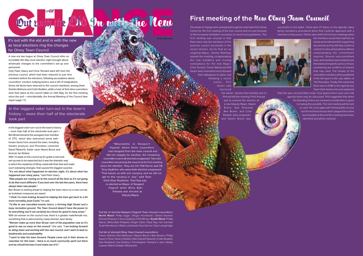 The next meeting will be held at 7.30pm on Monday 3rd September in the Council Chamber In the Olney Centre. Members of the public are always welcome to attend and, if they wish, speak at the start of the meeting, or at any point that the mayor decides is appropriate. Official minutes of all meetings and much more information can be accessed via OTC's revamped website at