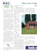 M.B.C. Olney Town CrickeDavid Cricket CBy the middle of2004 and through the club's own nd-raising e orts, assisted by two substantial grants from Olney Town Council and the Milton Keynes Community Foundation, we had raised su icient BUILDING & TIMBER MERCHANTS GARDEN and T H E provided, courtesy of Alfie Harrison, the local baker. first DIY SUPPLIES reference ---------- to cricket being played in Olney appeared in the Almanack of 1883. In the early days cricket was played at several locations This pavilion was still far too small so, by 1960, someone spotted an advert for an unused chicken broiler house for sale locally. The main attractionwasitssize,some50feetby 40 feet. The building was purchased and a military style operation to dismantle and re erect it at the ground was masterminded by Alfie Harrison. in the town. These included "Hatch Green" - a field now taken up by the Carey Way estate, "Cherry Orchard" - now the site of the Conygere estate - and then on a field in Yardley Road, believed to be where the Moores Hill estate now This building Chicken Broiler House lS. "Olney celsior Cricket Club" Finally, in 1898 Olney Town Cricket Club (or as it was then known "Olney Excelsior Cricket Club") moved to the Recreation Ground proved adequate for many years with several mmor improvements being added at intervals. where we remain to this day. Prior to World War II, the club had By the early a small pavilion situated at the church end of the ground. This pavilion served us well until 1 939, when it was demolished and the ground ploughed up to produce food, potatoes etc for the war effort. The ground was re sown with grass after the war and standards expected levelled. by both club Mrs Looms' Tea Rooms members and Cricket recommenced in the 1 947 visiting teams. season with no pavilion but the use of Floods a small hut belonging to the Rugby Conclusive Club for kit storage and shelter. Teas evidence of the end were taken on the Market Square at of one era came Mrs Looms' Tea Rooms. with the floods of October 2000 which wreaked further damage to the condition of our old pavilion. money to take the decision to go ahead and build the new pavilion you can now see at the Recreation Ground. By 1 948, club members had their collective skills together and built a new pavilion at the railway end of the ground in a very similar style to the pre-war one. A few seasons later a small extension was added to create a kitchen from which teas were AD VALORIM CHARTERED CERTIFIED ACCOUNTANTS PAGE 32 THE PHONEBOX teas, showers and a post-match beer. put In 2002, the club decided to demolish the old pavilion and, armed with just over £7,000 and planning permission r a new pavilion, club members crossed fingers, toes and any other loose bodily appendage they could find and hoped for the best. 1990s it became increasingly obvious that an ex-chicken hut could not provide the Two years were spent lodging in a site hut kindly provided by Francis Jackson Homes and squatting with our friends at the Football Club who kindly provided accommodation for Souls oThe cricket club is indebted to a huge number of local people and rms who have given time, money and technical expertise to make the pavilion happen. Indebted