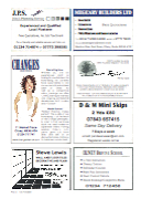 J.P.S. John's Plastering Service Experienced and Qualified Local Plasterer Free Quotations, No Job Too Small MEGEARY BU DERS Lm DDD•• • New Build • Extensions • Renova ons For a friendly and reliable service call John on 01234 714874 or 07773 398581 Steve Lewis WALLAND FLOORTILES DECORATIVE AND PLAIN • PVCuWindo andConse atories TEL 01234 714508/240200 MOBILE 07775 700151 EMAIL paulmegeary@tiscali.co.uk Meadow Rise, East Street, Olney, Bucks MK46 4DH D & M Mini Skips 2 s £80 07843 65741 5 Same Day De very 7 Days a week email: pandsservsean@aol.com Registered waste carrier OLNEY DRIVING SCHOOL • L Test Instruction • Theory Tuition • Refresher Courses • Pass Plus Instruction • Dual Control Vehicle • Block Bookings/Competitive Rates FREE QUOTATIONS CHANGES Recruiting Now HAIR DESIGN Whether you are an experienced stylist or looking for your first step into hairdressing we currently have opportunities to join our successful & established salon at Olney. As well as a competitive salary package we offer full NVQ training for trainees and ongoing professional development both in salon and in London Model School "Perfect Practice makes perfect". The quality of our hairdressing is at the heart of the Changes philosophy. In order to train our future stylists we need models for supervised weekly training sessions. Colours, cuts, perms, gents cuts, blow dries and sets all at discounted prices. Call now to make and appointment. 1 1 Market Place Olney, MK46 4EA 01234 711741 www.changeshair.uk.com BACP Accredited Counsellor UKRC Registered Independent Counsellor PG Dip Couns General Counselling Service for individuals and couples, working with a wide range of issues including: depression, stress, relationship problems, abuse, bereavement, sexual issues and anxiety. Clearview House, High Street, Stoke Goldington, Bucks MK16 8NP Tel: (01 908) 551 331 E.mail: kaztwyford@yahoo.co.uk PAGE 8 THE PHONEBOX 01234 712458
