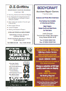 D.S.Gri iths INDEPENDENT MOTOR ENGINEER Established 1982 • Servicing, Mechanical & Electrical Repairs • Sun Diagnostic & Tuning Equipment for accurate Testing and Setting of modern computer systems • Most makes and models of Cars & Light Commercials • Parts Supply Service • Tyres & Exhausts • Valeting and Bodywork Repairs COLLEC & DEL RY Specialising in French, German & Landrover Vehicles North End Road, Ravenstone, Olney, Bucks M 6 N Tel 01908 551339 Fax 01908 551525 • Se icing I Repai all makes and models • Air Conditioning Se icing 75 • MO s Unde aken • res & Exhausts 04 60 MOTs for cars & motorbikes • 24hr B akdown Recove • or lliams aile serviced and supplied CARS • BIKES • SCOOTERS TELEPHONE TODAY ON Janlin Complex Northampton Road, Warrington Olney, Bucks MK46 4HW Tel: 01 604 6961 04 Fax: 01 604 6961 04 Gardner & White O ering a Better Service NEW PEUGEOT SCOOTER AND SACHS MOTORBIKE DEALER SALES • SERVICE • PARTS Servicing carried out on all makes of Cars, Bikes & Scooters Always a selection of 30 high quality used cars on display 01234 BODYCRAFT Accident Repair Centre Free Estimates Insurance and Private Work Unde aken Free Cou esy Cars Available or Collection and Delivery Sma Repairs Bumper Scu s and Small Dents Car Park Dents )) ,, No Booking Required MOTs carried out while you wait PAGE 30 PHONEBOX Free retest within 14 days High Street, Stoke Goldington, Newport Pagnell Tel: 01908 551387 Fax: 01908 551602 www.gardnerandwhiteltd.co.uk