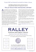clients. You will soon be able to track your matter on-line Visit www.ralleysolicitors.com to find out more about at any time day or night. the firm.