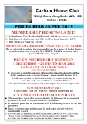 E Carlton House Club Membership Renewal – £14.00 (approx 27p per week, but see below) E Club Renewal Membership with CIU 2013 Pass Card Renewal – £17.50