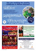 Are you looking for quality childcare in Milton Keynes? Enjoy peace of mind at Wellles Day Nursery Rural setting with large outdoor play facilities Independent Nursery established In 1989 Home cooked meals provided In 5 Star EHO Rated faclllty Care for our environment - cotton nappies provided Bookings accepted from Just 1 session per week Looking for local childcare? Acorn Childcare has nurseries in your area for ages 4 months to 4 yrs at Brafield-on-the-Green Castlethorpe Cedars at Newport Pagnell Further nurseries in Milton Keynes and at Please phone for info Acorn Education Support & Training Burton Latimer 66 Phonebox Magazine Ashleigh: Tel: 01234 930 730 I Mob: 07712 633 436 I Email: ashle ghw@tiscali.co.uk Private Tutors Valerie A Malcolm Tables, mathematical concepts, handwriting, reading, spelling, sentence writing Valerie: 1 8 Rivetts Close O ney Bucks, MK46 5PB Email: vmalcolm@aol. m IWeb:valer ema co m. .uk ITel: 01234 713 595 Limited spaces available Ashleigh Wright GCSE Science 01908 510309 Ch'ldcare