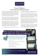 Advison can help you construct a portfolio of investments that take into account your aims, attitude to risk and timescales. Why not contact us today for a free initial meeting.