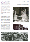 0n9th November, 1 953 this Conveyance confirmed the gifting, for £85, of a parcel of land adjacent to the Horseshoe Inn in Lavendon to be held in trust "for purposes of physical and mental training and recreation and social, moral and intellectual development through the medium of reading and recreation rooms, library lectures, classes, recreations and entertainments or otherwise as may be found expedient for the benefit of the inhabitants of Lavendon without distinction of sex or political religious or other opinions." The Lavendon Hall Management Committee decided to mark the 60th anniversary of this event, with a Diamond Celebration Dinner and a souvenir booklet for the guests, showed historical, pictorial glimpses of the site. The first Village Hall was an ex-army officers' "pavilion", 90 feet long, 30 feet wide and 1 2 feet high at the eaves, purchased for the sum of £650. Three guests of honour attended the Dinner; Mrs Molly Cony, who was elected to the Village Hall Committee in 1 949; served as Chairman from 1 960; was booking clerk for 36 years and resigned from the Committee in 2005 after 56 years service. Mrs Barbara Kitchener, who was elected to the Village Hall Committee in 1 949; worked tirelessly looking after all aspects of the Hall and is still, after 64 years service, issuing and receiving back the keys from hirers. Mr William Tusting, Director of the Tustings family firm, whose generous donations over the years have been greatly appreciated. The Village Hall is wearing well after 60 years, but is now beginning to look a little tired and show its age, so an ambitious 6-phase refurbishment project has been planned, at an estimated cost of £80,000. £40,000 has already been raised and the Committee is working hard to raise the rest. If you want to find out more about the Village Hall as well as how you can donate via the GiftAidSchemetothisworthwhilecommunity charity, go to the www.lavendonconnection. co website and find the donate button on the left-hand quick link panel. Lavendon Village Hall Celebrates its 60th Birthday John Salter 34 Phonebox Magazine