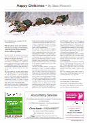 Happy Christmas - By Dave Pibworth So Christmas is upon us again. As Tom Lehrer once sung: ' ll the turkeys, ducks and c ckens, the punch, drag out the Dickens, Even though the prospect sickens, Brother, here we go again'. But don't worry, I'm not going to have a go about Christmas as it's a fun time and it's peace to all men and all that jazz. I'm off to Leatherhead this year to play an Ugly Sister in Cinderella, so I'm going to enjoy myself and if any of you happen to be in Leatherhead around this time do come and see the show and say hello afterwards. I'm the one in the bar with the dress and wig on. My only concern is the travel as it's about 70 miles away and while I'm staying there for some of the time I shall be travelling home to the family whenever possible and it's a devil of a journey. However in comparison to Father Christmas (I refuse to call him Santa, it's so American) it's fairly easy. He has a terrible job that night. Assuming he visits only Christian children that's still about 300,000,000 deliveries, assuming an average of 2 kids in each r thts to do w h our t t? t do tht hArd wor r oul Reliable and Fully Insured Weekly, Fo nightly, Monthly References Supplied family. Ok, he doesn't have to contend with the traffic as he avoids the M25, but it's still a heck of a days work by any standards, and I'd imagine that given the choice he'd prefer to be in Leatherhead. H is calorie intake worries me slightly as well. OK, a mince pie and a glass of sherry never did anyone much harm, but 300,000,000 of them in one evening? I know he's reputed to be a large man, but I 'm surprised he's in a fit state to drive. I can only assume that Rudolf, Dasher, Dancer, Prancer, Vixen, Comet, Cupid, Dunder and Blixem will know the way home, but it does go someway to explain why he only visits us all once a year. And at Christmas there's a song for everyone isn't there? For those of a religious bent there are carols, for the more frivolous there is 'Merry Christmas Everybody' by Slade and for the downright miserable there's that Band Aid song 'Do They Know It's Christmas' which is guaranteed to knock the jollity out of any gathering. If you want to finish a party, that's the one to put on. Actually there are a few Christmas party stoppers when you think about it. The Winifred School Choir 'There's No-One Quite Like Grandma' springs to mind or - believe it or not - 'Grandma Got Run Over By A Reindeer', which true to form was a Country & Western Song, and of similar ilk was 'Please Daddy (Don't Get Drunk This Christmas) byJohn Denver, another cheery number with the immortal line "And now I'm almost eight, as you can see, you came home at quarter past eleven, and fell down underneath our Christmas Tree". But there are good ones, such as 'Santa Baby' by Eartha Kitt, who you older ones may remember as Catwoman in the original Batman series in the 60's. She was a brilliant performer. My all time personal favourite is 'Rocking Around The Christmas Tree' by Mel and Kim. (That's Mel Smith and Kim Wilde). Because it's just very funny, and in my opinion Christmas doesn't need to be gloomy. And if am feeling gloomy then I listen to Tom Lehrer's 'Christmas Carol' which was quoted at the start and I end with. 'At Ch stmas T e You Can't Be Sore, Your Fellow Man You Must Adore, There's T e To Rob H A The More, The Other Three H dred and S ty Four' . And that cheers me up ensely. Let us look a er all your domestic cleaning needs Call today for a competitive no obligation quotation 01234 240 848 Mobile 07917 865460 Email in @olneycleaningangels.co.uk www.olneycleaningangels.co .uk Accountancy Se ices For self-employed and small businesses. Friendly service at competitive rates. For FREE initial consultation including evenings and weekends call ChrisNashon O1604696977 Accounts, Payroll, Book-keeping, Self Assessment, Year ends etc. CERTfFIED PRACTISING ACCOUNTANT 20 Bedford Road East, Yardley Hastings, No hampton NN7 1 HJ 0845 31 05326 domesticats@sky.com Phonebox Magazine 39