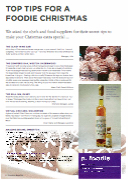 TOP TIPS FOR A FOODIE CHRISTMAS We asked the chefs and food suppliers for their secret tips to make your Christmas extra special ... THE OLNEY WINE BAR Add a drop of Cointreau and some orange zest to your custard. It will turn it around completely. Not in the mood for baking? The Olney Wine Bar have this with Bread & Butter pudding on their winter menu. THE COWPER'S OAK, WESTON UNDERWOOD Manage John The problem with cooking turkey is that the legs take longer to cook than the breast. It means the breast meat can end up rather too dry. Here are a couple of solutions. Push the sausage meat stuffing down under the skin over the breast. This means the breast takes longer to cook and the juice from the sausage meat stops the breast from drying out. Feel ing a bit more cheffy? Remove the legs and braise them separately in red wine. Then carve the breast meat away from the bone and lay it on clingfilm, place your sausage meat stuffing along the middle of the breasts and foll like a swiss roll around the stuffing. This will give you nice tender breat meat that's easy to carve and lovely juicy turkey legs. Head Che Daniel Gibbons THE BULL INN, OLNEY Roast the turkey breast down and only turn it over for the last 40 minutes to an hour to brown. This keeps the moisture in the breast meat rather than have it drain out over the course of cooking, meaning a much more juicy turkey. Chef and Manage James VIRTUAL ORCHARD, WOLVERTON A glass of mulled Cider Claus and a mince pie starts of the season rather nicely and Santa may enjoy it too! Then on the big day, try a generous splash of apple brandy over the Christmas pudding washed down with a glass of Virtual Orchard English Mead. English Brandy from rtual Orchard pe ect over your Christmas Pud english apple brand Cider maker and Manage Laurence AMAZING GRAINS, EMBERTON 42 Phonebox Magatine