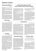 Readers Letters Olney Seat Belt Run T. Stanbridge Ron, David and yourself have nothing to apologise for. The ridiculous "Olney Seat Belt Run" that takes place regularly in Olney High Street during early morning rush hour is a pathetic waste of Police time. You can spout all the statistics you like, but anyone with an ounce of common sense knows that this circus, on its own, is not going to save a single life or serious injury. It simply gives the public a feeling of betrayal in return for being law-abiding and willing to help the police when asked. The real (and perhaps most hilarious) problem, apart from employing officers whose time would be better spent elsewhere, is the fact that the very obvious plain clothes officer lurking at Brocks, who radios ahead to his colleagues, seems to be enjoying his job too much. Didn't he get anything else for Christmas to play with? Free Press Fiona Youlton At first, I assumed pages 54/55 were part of the annual April Fool joke, usually so well done by the Phonebox. However, it appears that Commander Barry Halliday's strop is for real. I find it somewhat pathetic that a grown man in such a senior position can't take some constructive criticism, delivered with tongue in cheek humour, without throwing his dummy out of the pram. Of course, he is absolutely entitled to express an opinion (the words "free press" are the clue here), but he is not entitled to ask for a retraction of someone else's opinions. Well done Davod Pibwith for the editorial note and to David Pibworth for his "abject" apology - beautifully done. As he said - "Power to the People"! Kerfuffle Richard Meredith Ron; I have just read the April Phonebox. What a kerfuffle over David Pibworth's piece - and what a distinctly stuffy reaction from the LPA Commander, who evidently cannot differentiate between an OpEd (comment) column and a Factual (news) story. Even so, and despite lacking in any apparent sense of humour, he is as entitled to a view as I am. Your editorial decision to publish his response speaks volumes for your fairness. From my perspective, it was also good to read your support for the IPSO proposal of editorial standards, rather than the Government's call for more draconian measures. A free press is one of the few ways in which wrong-doing can still be called to account; and that goes for police officers as well as the media itself. Disappointingly - but quite correctly - both have found themselves in the spotlight all too frequently in recent days, as no doubt even the myopic Commander is painfully aware. Keep wearing that Editor's eyeshade and all power to your elbow! Pancake Race 1950 and Traffic Lights at Station Road, Newport Pagnell 30 Phonebox Magazine In the April Phonebox on page 48, you mention that the Daybreak programme on ITV showed a short clip from the first International Pancake race in 1950, which was won by Florence Callow (now Mynard). Florence is my mother. My wife was lucky enough to see and record the short clip shown by Daybreak. Since it had been shown on ITV, I made contact and they very kindly sent me the complete Pathe News film, firstly as an attachment, then on a plain DVD. I do not have the technology to copy the attachment to a disc and my computer will not allow me to attach the file to this email (exceeding attachment limit). My mum is now 83 years old and not in the best of health following a fall. She has now seen the film for the first time and it bought back so many memories, particularly the man on a bike, with what looks like a microphone in his hand. He Doug Mynard noticed mum had started to slow down because she could not see the other competitors, and told her to keep on running! Traffic Lights at Station Road, Newport Pagnell Approximately three copies ago, and under the name of "Dougall", I reported the problems being experienced at the Station Road traffic lights. In the following copy, this was echoed by someone else who has also experienced the same frustrations and near misses. I forwarded my email to the local Lib-Dern candidate who stated he couldn't see a problem. Well, I am pleased to report that the light sequence has been changed, the delay is now very short and, sometimes, if you drive very slowly towards the lights, they are on green as you reach them. Result! Thank you Phonebox! Good job done! I write in reply to the article published in your April issue of Phone Box concerning the proposed solar farm at Hanslope. The Daily Mail brigade seem to be besotted with solar farms. Don't get me wrong, they are part of the answer and I even have some black solar panels on my own house roof which blend in beautifully. From my experience, I can assure you that they don't produce any power on a cloudy day and sometimes a week goes by without a 'free' boil of the kettle. When we all need power for lights, heating and cooking on a winter's evening, solar panels are definitely not the answer. The land that panels smother cannot be used for farming as livestock have been known to damage the panels and, of course, it's no good growing any crop in the shade. In fact, the grass Earls Barton Rally Pat Conroy Organisation is going well for the Earls Barton Rally on the August Bank Holiday 2014 at Whites Nurseries.In additionto the GallopingAcrobatics, we will have quad bikes and a Punch and Judy show, as well as the usual attractions. We hope that this year will be even better than previous events. All the committee are totally dedicated to making our event as happy and enjoyable as possible, for both exhibitors and the public. Penny Smith has now taken over the steward's rota and will be doing the advertising for the programme, so she will be in touch with our regulars in the near future. If anyone is interested in helping with the event or advertising in the programme, contact Penny on: (01933) 664730 or 07890 260 634 You can also contact me on (01933) 663454 if you need anymore information. Green energy enthusiast area between the panels 