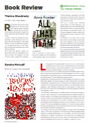 Book Review Oxfam Bookshop, Olney Tel: 01234 714592 that they had been betrayed by one of their own group. Loved and trusted, they were suborned by the Nazis and persuaded to hand over their friends. This is an intricate novel, requiring concentration, not least because of its episodic nature, as various characters report the events and the chronology is not always clear. However, it is well wo h the effort, as it brings a watershed in history vividly to life, seen through the eyes of those who lived through it. In sources at the back, Anna Funder describes her novel as being 'reconstructed from fossil fragments, much as you might draw skin and feathers over an assembly of dinosaur bones, to fully see the beast.' What an accurate description of this tale. The novel provides a fascinating yet chilling insight into what can happen when extremists ofanyregimearegivenabsolutepower.This is a good and worthwhile read for those long summer days in August. Thelma Shacklady R That I Am, Anna Funder uth was the only one left of her friends living in Germany when Hitler came into power. Decades later, and as an old, frail woman in the 21stcentury, she appears throughout the novel, recalling the tragic events that formed her life. The other chapters are headed by various characters, whose stories are also told. Some, like Ruth, are based on real people and their accounts are historically accurate. This includes Dora Fabian, Ernst Toller, Be hold Jacob and Hans Wesemann, while others are fictional. All of them fled Germany before the SecondWorldWarandattemptedtowarn other countries of the dangers of the rise of Fascism. Many ignored their warnings, Sandra Metcalf vers of London, Ben Aaronovitch Anna Funder A including Britain. They all suffered in various ways - imprisonment, threats, insults and intimidation - but the greatest tragedy was the realisation Lefttoguardacrimesceneoutsidetheactors'churchinCoventGarden in the early hours of the morning, Constable Peter Grant encounters a witness. However, trying to take a statement from him proves difficult as the man has been dead for more than a century. About to come to the end of his probationary period with the Metropolitan Police, Grant is expecting to be assigned to the Case Progression Unit, which is a desk job and the last thing he wants. But his conversation with a ghost and a meeting with chief inspector Thomas Nightingale changes all that. Suddenly, he's a member of a police unit that few people know exists and nobody talks about. Despite his science background Grant has become, to all intents and purposes, an apprentice wizard, enduring the kind of apprenticeship which needs lots of hard perseverance to discover whether you can master some very strange but useful technique. Rather than the facile waving of a magic wand, they learn to hunt someone or something which is driving people to commit the most appalling crimes. The novel has an entertaining sub-plot which creates a kind of new mythology for London's rivers, involving a 'turf war' between a group of people who personify the tidal reaches of the Thames, and another group who represent those rivers beyond it. This can sometimes feels a bit detached from the main action and can seem like a complication too far in what is already a complex plot, but it does develop some interesting characters and it emphasises London's role in the story. The bustling metropolis is a character in this book not simply a setting. Its history and ghosts are as much a part of its life as its modern buildings and the 21st century methods of its police force. The writing is witty and quirky with shades of Douglas Adams (of blessed memory). The action moves quickly and Grant is a cynical but engaging central character, alongside Nightingale, who is enigmatic, and the more bracing personality of Dr Walid, the pathologist. So, if you're tired of vampire-porn masquerading as fantasy, try sinking your teeth into something which displays some real imagination and invention and, thankfully, a sense of humour. 28 Phonebox Magazine