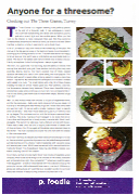 Anyone for a threesome? CThec ng out The Three Cranes, Turvey he Three Cranes is a regular watering hole perfectly placed at the end of a favourite walk. It has undergone a recent refurbishment transforming the dated and somewhat gloomy pub into a smart, light and fashionable space. When you first walk in, the interior is more restaurant than pub. But they welcome drinkers and eaters alike and there is a roomy bar area to one side. Given that food is clearly a priority, it was time for us to check it out. Nine of us made our way over there on the hottest day of the year. We met up in the big garden area at the back and were more interested in catching up than sitting down for dinner. The staff were more than happy to let us take our time and it was a while before we eventually took our seats. The rest of the tables were full and there was already a buzzy, friendly atmosphere. Lots of smiling faces - always a good sign. The menu is a good one. Not too long, but still plenty of choice. And one up from standard pub grub. Nine starters, including four very nice sounding sharing boards. Our team covered four of them, seared scallops with leeks and lemon chilli butter being the most popular. The kitchen staff weren't phased either at being asked to create a dairy free version -top marks. My choice was the baked pear and roquefort cheese with roasted pine nuts. This smelt divine with a big hit of blue cheese meeting the nose on arrival. Tasted good too. Pear perfectly poached, the flavoursome cheese nicely balanced. There was a beautiful looking smoked duck salad and a pretty as a picture ham hock and pea terrine in the mix too. Every plate went back to the kitchen empty. Starters range from £5-7. Main courses include three fish choices, a couple of vegetarian items, and for the carnivores - belly pork, lamb chop and of course, steak. I'd had a tip-off the belly pork was the way to go and indeed food envy went my way that night. It's served with a smoky marinade. Again a superb smell on delivery - this meal I have been eating as much with my nose as my tongue. The pork was spot on with the fat layers rendered down to nothing. The sticky marinade had managed to do more that sit on the surface and the pork had a lovely smoky characteristic. Good mash alongside. The rest of the table was mainly fish and all met with favour. There was a lamb chop too and a slightly odd mixture of sweet chilli chicken and pork ribs. Once again all the plates were returned clean to the kitchen. The main courses are around the £15 mark with the steaks a little more expensive. Now I don't normally do dessert, but there were some lovely light choices o n t h e m e n u i n c l u d i n g p e a c h a n d p r o s e c c o s o r b e t , e l d e rf l o w e r p o s s e t w i t h summer berries and my choice, fresh strawberries with balsamic syrup and mascarpone cream. All of these are served with a marvellous home made shortbread. The cheeseboard, featuring only British cheeses, also looked amazing. £6 or £7 for dessert. In summary, we had a lovely night. Good food, lovely atmosphere, great company. Nice to see some imaginative choices on the menu, executed well and priced about right. Any complaints? The best we could do was a mere suggestion - a hunk of bread served with the scallops to mop up the yummy lemon and chilli butter would have been a nice touch. With empty plates and smiling faces all round this is an excellent addition to our local restaurant choices. Already looking forward to my next visit. HB
