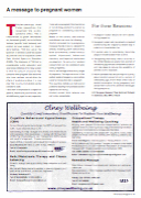 A message to pregnant women Thirty-two years ago, United States researchers first recognized fetal alcohol syndrome (FAS). FAS is characterized by growth deficiencies (or, decreased growth), abnormal facial featu res (specific facial featu res), and central nervous system (or, brain) abnormalities. FAS falls under the spectrum of adverse outcomes caused by prenatal alcohol exposure called Feta! Alcohol Spectrum Disorders (FASO). The discovery of FAS led to considerable public education and awareness initiatives informing women to limit the amount of alcohol they consume while pregnant. But since that time, more has been learned about the effects of alcohol on a fetus. It is now clear that no amount of alcohol can be considered safe. I now wish to emphasize to prospective parents, healthcare practitioners, and all childbearing-aged women, especially those who are pregnant, the importance of not drinking alcohol if a woman is pregnant or considering becoming pregnant. Based on the cu rrent, best science available we now know the following: Alcohol consumed during pregnancy increases the risk of alcohol related birth defects, including growth deficiencies, facial abnormalities, central nervous system impairment, behavioral disorders, and impaired intellectual development. No amount of alcohol consumption can be considered safe during pregnancy. Alcohol can damage a fetus at any stage of pregnancy. Damage can occur in the earliest weeks of pregnancy, even before a woman knows that she is pregnant. The cognitive deficits and behavioral problems resulting from prenatal alcohol exposure are lifelong. Alcohol-related birth defects are completely preventable. For these Reasons: 1 . A pregnant woman should not drink alcohol during pregnancy. 2. A pregnant woman who has already consumed alcohol during her pregnancy should stop in order to minimize further risk. 3. A woman who is considering becoming pregnant should abstain from alcohol. 4. Recognizing that nearly half of all births in the United States are unplanned, women of childbearing age should consult their physician and take steps to reduce the possibility of prenatal alcohol exposure. 5. Health professionals should inquire routinely about alcohol consumption by women of childbearing age, inform them of the risks of alcohol consumption during pregnancy, and advise them not to drink alcoholic beverages during pregnancy. U.S. Surgeon General, Vice Admiral Richard H. Carmona, MD, MPH, FACS Cognitive Behavioural Hypnotherapy (CBH) Some clinical studies have shown that 80% o f people find CBH more e ective than CB Specialising in stress management, anxiety and related issues and depression. Also experienced in helping with the treatment of IBS, high blood pressure, pain management, fertility issues and weight management. 1 0 years experience. Occupational Therapy Health and Wellbeing Coaching Working with people to maximise independence, achieve an optimum level offunctioning in daily living and identifying risk areas, making recommendations to manage potential risks. Specialising in working with people with long term illness, older people and those potentially suffering with memory problems and Dementia. Claire Dowling BSC Hons Occupational Therapy, MBAOT, HCPC. NHS qualified Head Occupational Therapist, a member of the Health Professionals Council and The British Association of Occupational Therapist with 1 4 years experience and enhanced DBS. Hypno-birthing preparation can be taught individually or in groups. V W Q y C r R O Y Y w Lucy Stratford BA Hons, D.CBH, D.Hyp, MBSCH Tel: 07774 626293 Email: stratfordhypnotherapy@hotmail.co.uk =-· __ , . §m l I Tel: 07985 305294 / 01234 959028 Reiki/Metatronia Therapy and Chakra balancing Powerful energy healing promoting deep relaxation and well being. May benefit, Back. neck and shoulder problems, migraine, joint pain, stress and tension, anxiety and depression Lindsey Wolstencroft Te l : 0 7 9 5 6 8 2 0 9 8 9 / 0 1 2 3 4 2 4 0 9 1 4 Email: lindsey@ravenmoonreiki.co.uk Email: clairedowling1 occupationaltherapist@gmail.com Remedial Massage Deep tissue massage to physically and mentally aid healing and relieve pain. Also experienced in infant massage, qualified infant massage trainer. 20years experience. Wendy Cox MTIGB, IAIM, MTI Tel: 07760 340998 Email: wendyecox44@gmail.com www.olneywellbeing.co.uk Phonebox Magazine 61