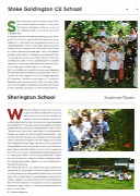 Stoke Goldington CE School toke Goldington pupils enjoyed a fascinating visit to three different churches in Olney, plus The Cowper and Newton Museum, as part of their 'Reflection Week' in the run-up to the end of Summer term. All 26 pupils admired the amazing stained glass in St. Peter and St. Paul's Church, explored the 250-year old font in the Baptist Church and found out more about the work of the United Reformed Churchtoo. The children also walked to the Catholic Church to admire it from the outside. At the Cowper and Newton Museum they were able to enjoy the beautiful gardens and had great fun dressing up as characters from the Georgian era during a very much 'hands-on' tour from the Museum curator. It was a packed day with a perfect opportunity to see so many different places of worship which are so often unexplored and right on our doorstep. Staff and children are currently enjoying a well-deserved summer break after a fantastically packed school year! Of course a particular highlight remains our Ofsted judgement of 'Outstanding.' The School opens again on Thursday 4th September when we welcome six children to Busy Bees E a r l y Ye a r s F o u n d a t i o n S t a g e p l u s t w o f u r t h e r n e w s t a r t e r s to Year 1 , bringing our total roll to 28 at the time of writing. Sherington School While the official summer school trip was a coach ride to Woburn Safari Park a low-key walk across the road to the Old Rectory yielded just as much interest in the natural world at close hand. No tigers but some very assertive geese andotherwildfowl. RumoursofGiantsprowlingtheschoolwere started when Giant Bob wrote several letters to the children. Then his cousin Buzz also heard about our achievements. Perhaps we should not have planted that beanstalk? Less worrying has been the good crop of blackcurrants that made a delicious smoothie for playtime and the mange-tout that were daily cropped by willing fingers. We were not too upset when the gooseberries were appropriated by the baby blackbirds. Many thanks to Geoffrey O'Brien and the Lions for supporting our horticulture this year. Interesting also was the appearance of a baby grass snake in the school grounds which made a brief visit into school for obse ation and an interesting question time session before being released into vole meadow next to the pond and bog area. Rev Mandy Marriott, in her weekly visit, had planted some poppy seeds (kindly donated by the British Legion) which while not yet flowering are growing well alongside those from former years. On an outdoor adjunct to worship assembly she took the children outside to look at the flowers which we will remember near Remembrance Day in the autumn. To all our supporters and helpers a big thankyou for the year and best wishes for a good summer break. Summer News 80 Phonebox Magazine