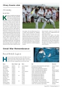 anywhere. The sport is a controlled structure of unarmed combat using the hands and feet to deliver and block blows with your opponent. Many children enjoy karate as the consistency of activities allows them to show their full potential through exercise and training and with the right teacher to guide them through the moves it can be very rewarding to accomplish goals, gaining a sense of achievement when they go up a belt. Karate is about self-defence and to be able to defend yourself is a great life skill building your confidence, dedication and respect towards others. Karate teaches you how to respond to a dif cult life situation in a controlled and precise way. The club teaches karate skills in many ways, for example, the use of kick bags and you are taught how to identify the correct ways to defend your self