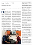 After that I asked a question about the spending cuts: “In the last few years with the widely publicised spending cuts hitting the police budgets, how would you say this has changed your role?” She answered with “drastically!” It has not changed their role speci cally but they now do the same role with fewer resources. For example, they do not have as many cars, so Christina often has to take the bus to travel around the local area. The next questions I asked were about problems such as cyber-bullying and how to prevent recurring incidents.