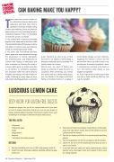 There have been several studies on the relationship between baking and happiness, and many have found a signi cant connection between being creative and wellbeing. Clearly an afternoon spent rolling out icing, kneading bread or melting chocolate can, in fact, not only satisfy our tummies, but also our minds.