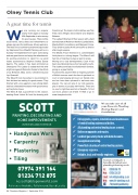 Try tennis this autumn! After an inspiring summer of British success now’s the time to get back on court or start playing tennis at our friendly club and we have been pleased to welcome new players. You can join any of our club sessions, play in teams or just play with friends. There are no court or light fees and lots of bene ts. To nd out more, please call 01234 711936 or go to www.olneytennis.club.