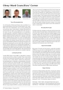 Most areas of the ward now have access to super-fast broad band (SFBB), but as a rural area it is understandable there are still several areas where SFBB is still unavailable. MKC has invested a signi cant sum into initiatives to work with BT and the Government to get matched funding so many of the villages in the Borough, not currently covered by the service, will be connected. The plans for the coming years’ rollout were revealed last year; we are working with MKC of cers to try to ensure that as many of the villages that we represent are SFBB enabled as soon as possible. We are therefore delighted that Ravenstone has recently been informed by MKC that it will bene t from SFBB in summer or autumn 2017; this is 12 months sooner than expected as reported to us nine months ago. We will continue to press MKC and BT to keep Olney Ward communities without SFBB as urgent requirements.