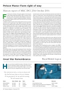 anyone had used the path without being warned that it was not a right of way, unless they had speci c permission. Her solicitor pointed out that because there was an apparent gap between two acknowledged rights of way there was no justi cation to assume a continuous right of way. He also claimed that there had been a ‘procedural irregularity’ in the way the DMMO noti cation had been served since it had been sent to the occupiers of the land, namely the Needham family and M K Windfarms Limited, rather than the registered owners who are Tulip Investments Limited. The report identi ed that the Needham family are in fact directors of both companies and the chairman was of the opinion that the landowners had had two and half years to identify the procedural error and could have sought a judicial review or raised an objection.