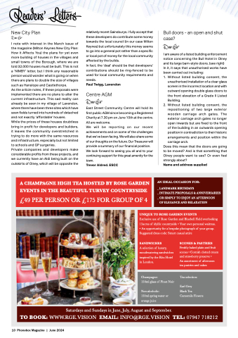 I note with interest in the March issue of the magazine (Milton Keynes New City Plan: How it Affects You) the plans for yet even more building of houses in the villages and small towns of the Borough, where we are told 32,000 houses must be built. This is not a ‘NIMBY’ letter, but I think any reasonable person would wonder what is going on when there are plans to double the size of villages such as Hanslope and Castlethorpe.