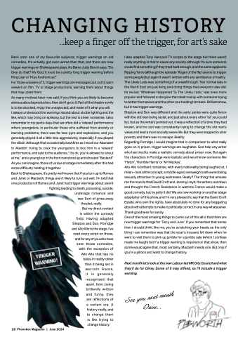 But my direct contact is within the comedy field. Having adapted Steptoe and Son, Porridge and Allo Allo to the stage, I’ve read every script on those, and for any of you who have seen those comedies, with the exception of Allo Allo that has no basis in reality other than it being set in war-torn France, it is generally recognised that apart from being brilliantly written and funny, they are reflections of a certain era. A history really, and to change them is like trying to change history. 28 Phonebox Magazine | June 2024