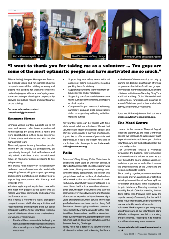 experience, or if you’d like to learn new skills in a volunteer role, please get in touch via email: office@emmausvc.org.