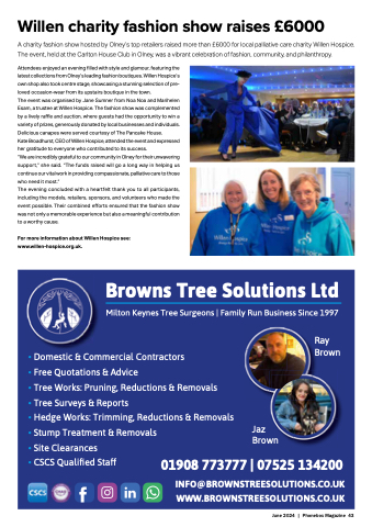 Attendees enjoyed an evening filled with style and glamour, featuring the latest collections from Olney’s leading fashion boutiques. Willen Hospice’s own shop also took centre stage, showcasing a stunning selection of pre- loved occasion-wear from its upstairs boutique in the town.