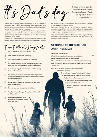 The big day for Dads in the UK always falls on the third Sunday of June each year – in 2024, that will be the 16th. It’s a social time for families to remember and honour their Dad, or a father figure such as a father-in-law, grandfather or guardian.
