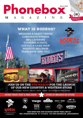 March 2025 | Phonebox Magazine 130YEARSLatest Local News Events & BusinessMarch 202530YEARSLatest Local News Events & BusinessMarch 2025WHAT IS RODEOS?WEDDING & PARTY VENUE CORPORATE EVENTS BBQ CATERING COOKING SCHOOL COFFEE & CAKE SHOP MASSIVE BBQ SHOP FARM SHOP AND DELIMORE THAN JUST A BBQ SHOPJOIN US ON THE 8TH MARCH FOR THE LAUNCH OF OUR NEW COUNTRY & WESTERN STORECLOTHING - BOOTS - BELTS - HATS - BAGS - ACCESSORIES AND MORE!EAKELY MANOR FARM, STOKE GOLDINGTON, NEWPORT PAGNELL MK16 6LPEMAIL: INFO@RODEOSBBQ.COM %u2022 TEL: 07775 695316 %u2022 VISIT: WWW. RODEOSBBQ.COM %u2022 @RODEOSBARBECUEOVER 50 BRANDS IN STORE
