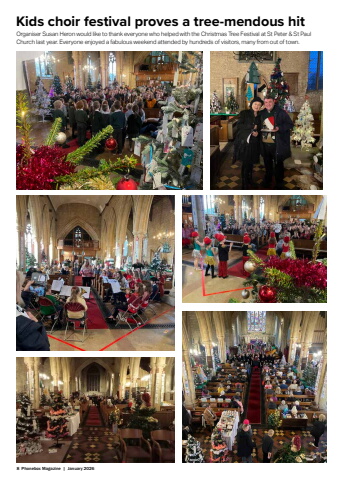 8 Phonebox Magazine | January 2026Kids choir festival proves a tree-mendous hitOrganiser Susan Heron would like to thank everyone who helped with the Christmas Tree Festival at St Peter & St Paul Church last year. Everyone enjoyed a fabulous weekend attended by hundreds of visitors, many from out of town.